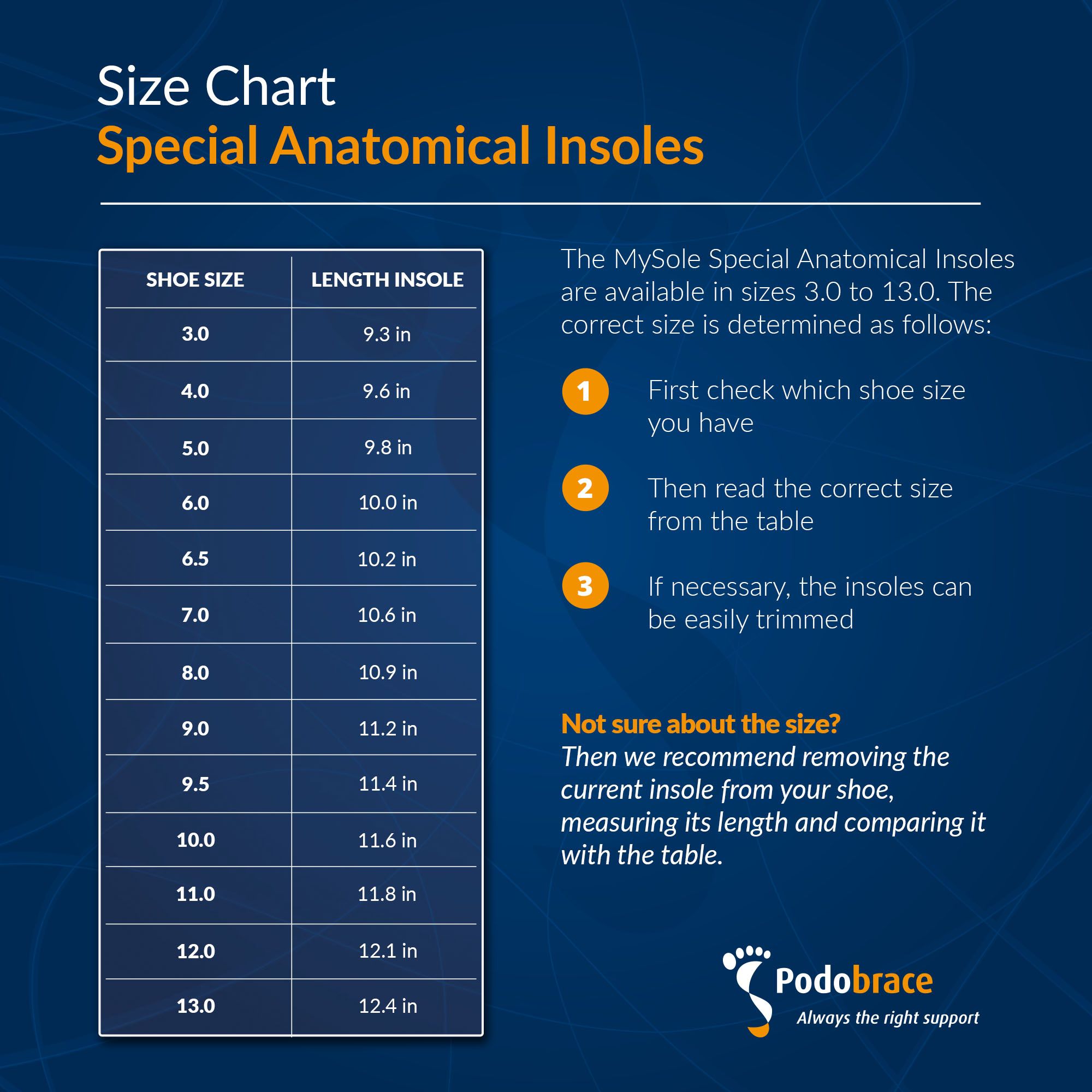 MySole Anatomical insoles provide targeted support for the rearfoot, midfoot and forefoot. The sturdy synthetic heel cup provides stability, while the EVA base profile and Clima Tex top layer ensure comfort and moisture absorption.